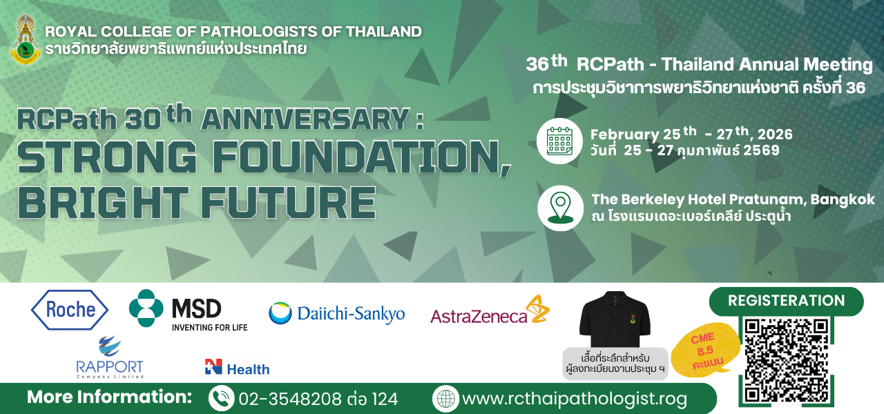 - ประชุมวิชาการพยาธิวิทยาแห่งชาติ ครั้งที่ 36 ประจำปี พ.ศ.2569 และ Post Congress (Optional)