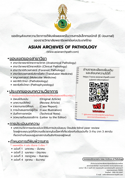 - ขอเชิญชวนพยาธิแพทย์ส่งบทความ วารสาร Asian Archives of Pathology